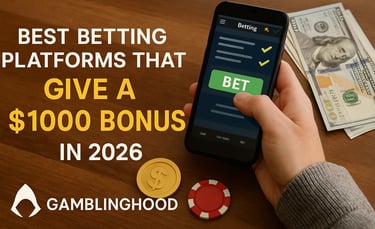 This detailed Gamblinghood guide explores the top betting platforms in 2026 that offer up to $1000 in bonuses, including welcome bonuses, matched deposits, loyalty rewards, and high-roller promotions. Learn which platforms are safe, licensed, high-payout, and best for profitable betting in 2026.
