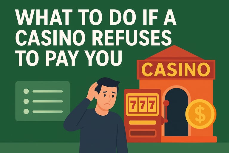 Discover what steps to take if an online or land-based casino refuses to pay your winnings. Learn how to identify scams, gather evidence, contact regulators, and ensure you get your rightful payout. This detailed guide by Gamblinghood explains every step to protect your money and your rights as a player.